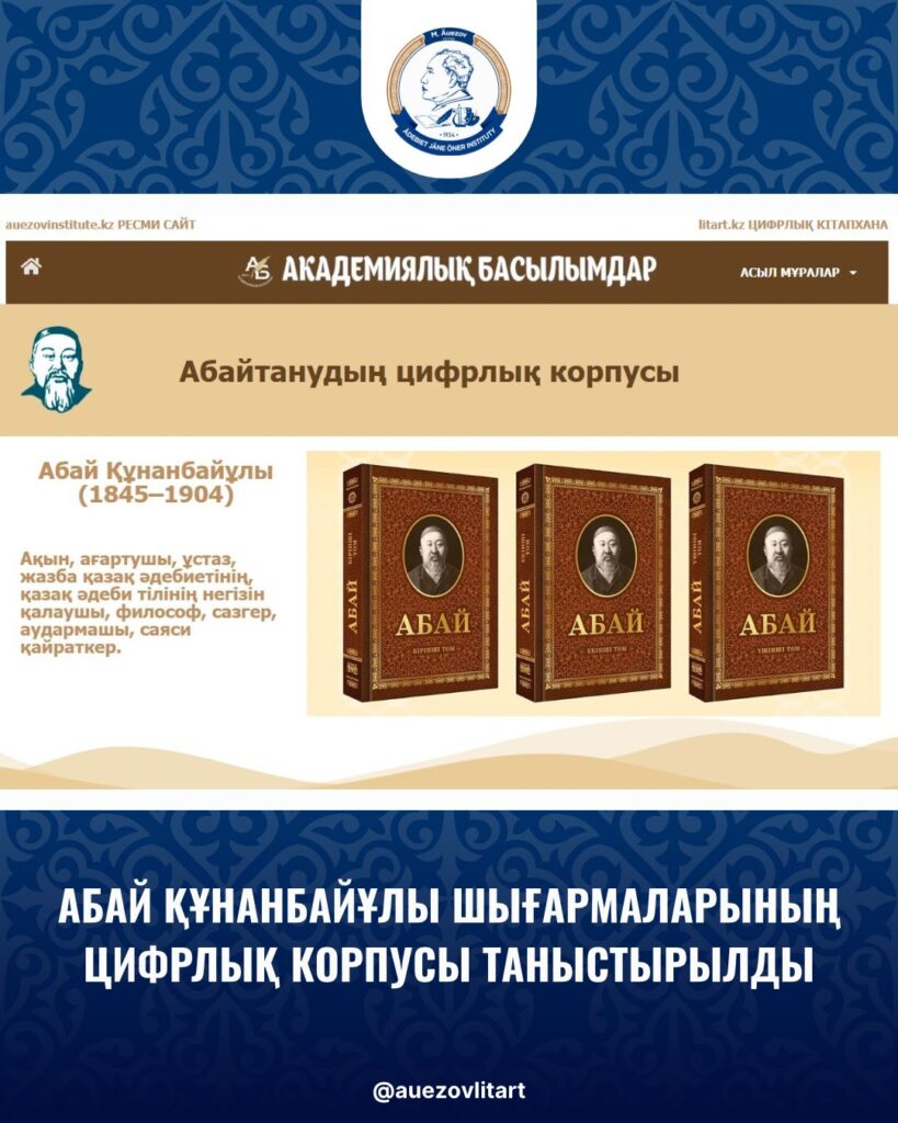 Шара барысында Абай Құнанбайұлы шығармаларының цифрлық корпусы ресми түрде таныстырылды. Таныстырылымды филология ғылымдарының кандидаты Бейсенқұлов Аязби Ахбергенұлы жасап, корпустың құрылымы мен мазмұнына жан-жақты сипаттама берді. Цифрлық корпусқа Абайдың 1909 жылы жарық көрген алғашқы жинағынан бастап, кейінгі кезеңдерде жарияланған барлық академиялық басылымдардың электронды нұсқалары, әр жылдары хатқа түскен қолжазбалар, сирек мәтіндер мен архивтік деректер толық ұсынылды. Абайдың академиялық толық жинағын құрастыру барысында негізге алынған қолжазбалардың барлығы осы корпусқа жинақталып, әрқайсысына сипаттама берілді. Сонымен қатар абайтануға қатысты ғылыми еңбектер мен зерттеулер жүйеленіп, біртұтас ғылыми цифрлық кеңістікке топтастырылған. Бұл жүйеде Абай шығармаларының аудио нұсқасы арнайы жазылып, қосымша берілді. Бұл жоба абайтану ғылымына тың серпін беретін, дереккөздік базасы кең әрі ғылыми әлеуеті жоғары іргелі ресурс ретінде бағаланды.