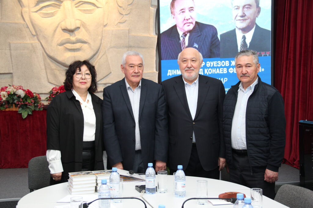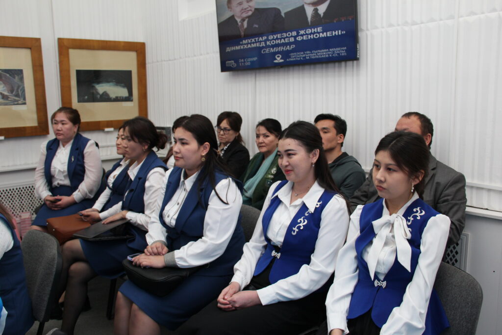 «Әуезов үйі» ғылыми-мәдени орталығы директорының орынбасары Мұқатаева Салтанат Амантайқызы «Мұхтар Әуезов және Дінмұхамед Қонаев феномені» тақырыбында баяндама жасап, қос ұлы тұлғаның өмірі мен шығармашылығына арналған кітаптар, ғылыми қор құжаттары, фотосуреттер көрмесімен таныстырды.
